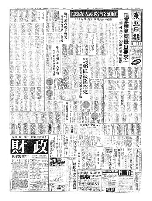 - 豫算(예산) 歲入缺陷(세입결함)이 250億(억)