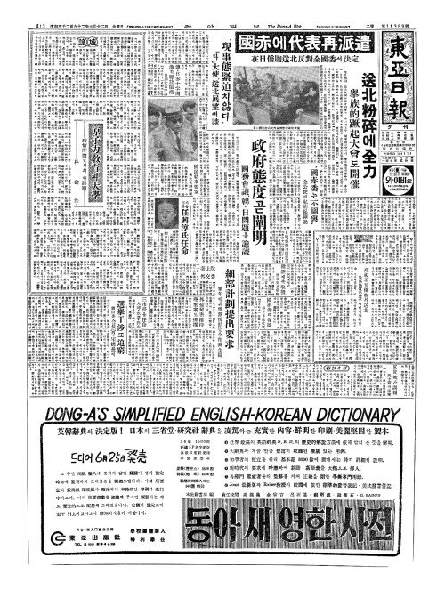 - "現事態緊迫(현사태긴박)치 않다" 『다』大使(대사)、送北展望(송북전望)에談(담)