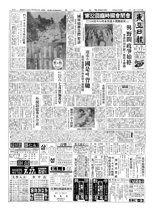 - 第(제)32回臨時國會閉會(회림시국회폐회) 150日(일)에 54次本會議(차본회의)도 別無成果(별무성과)