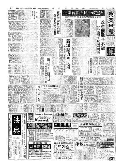 - 正(정)·副統領(부통영)은 同一政黨(동일정당)서 李議長會見談(리의장회견담) 明年選擧早期實施(명년선거조기실시)될듯