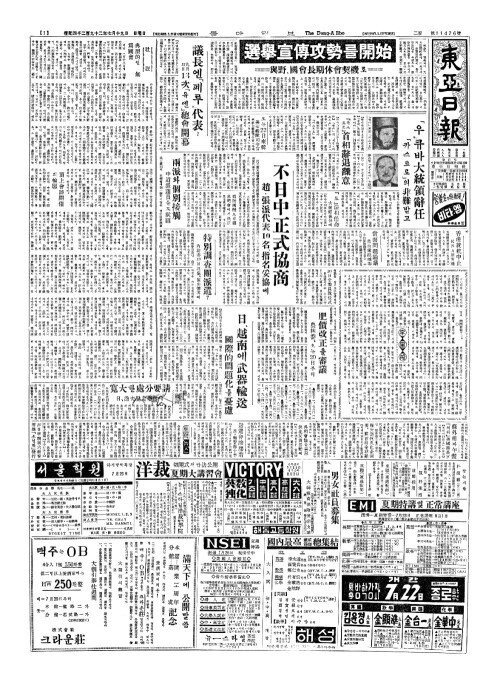- 美(미)、英(영)·佛三國間(불삼국간) 核武器協定發効(핵무기협정발효)