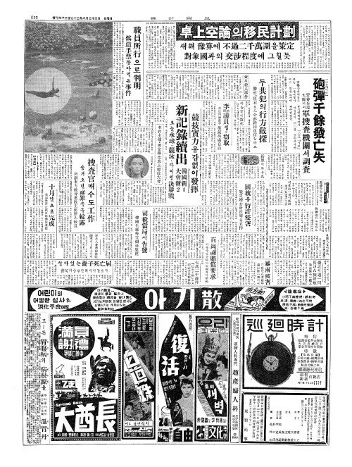 - 23日子朝刊六面(일자조간륙면)및 附錄(부록)『소년판』發行(발행)