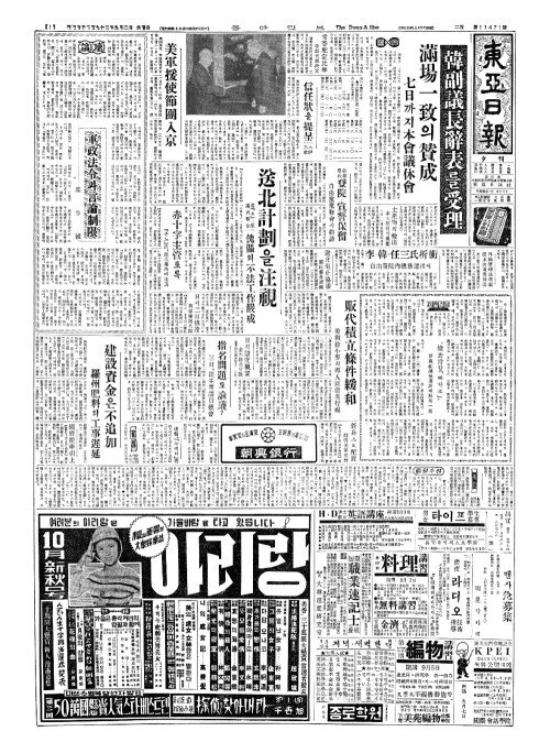 - 韓副議長辭表(한부의장사표)를受理(수리)