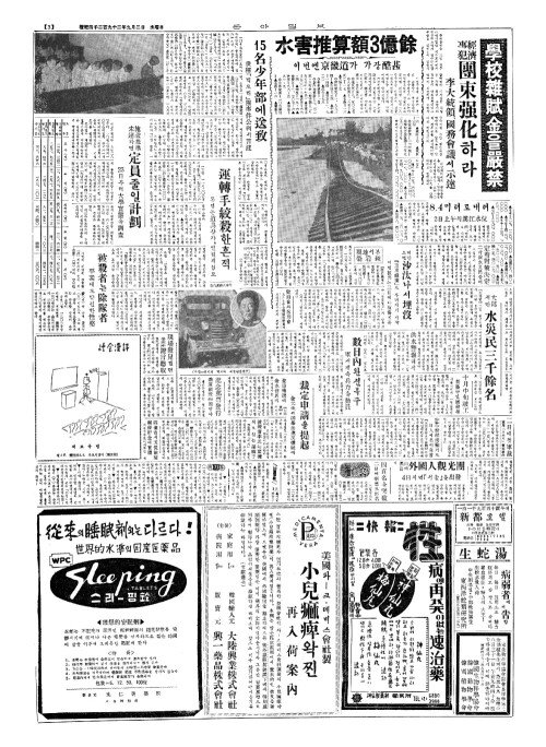 - 大邱(대구)서만 水災民三千餘名(수재민삼천여명)