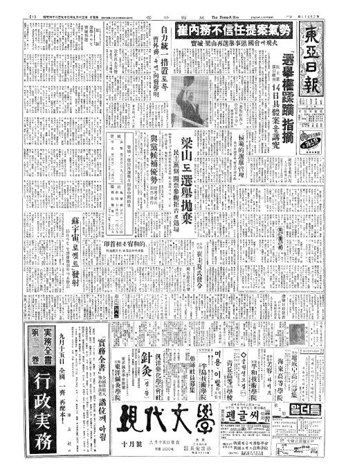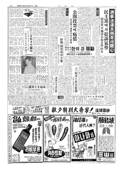 - 寳城(보성)·梁山開票完了(량산개표완요) 自由黨(자유당)의黃(황)·池兩氏當選(지량씨당선)