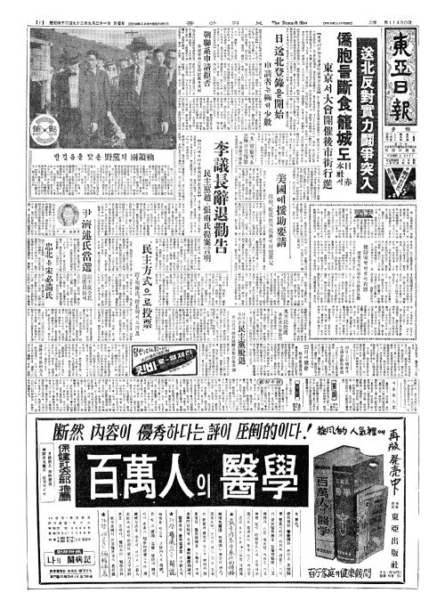 - 『모두힘껏 돕도록 李大統領談(이대통영담)、水災民救護(수재민구호)에同胞愛發揮(동포애발휘)』