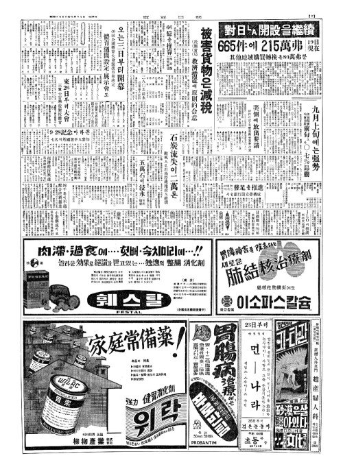 - 收容水災民(수용수재민)이五萬(오만) 蔚山郡內水害推算(울산군내수해추산)