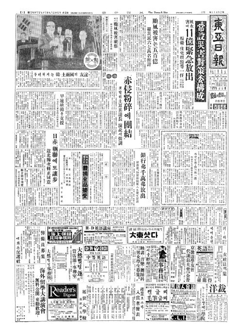 - 颱風災民救護金品(태풍재민구호김품) 本社寄托(본사기탁)