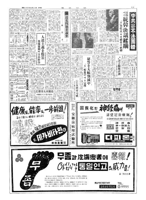 - 유엔總会(총회) 中共加入討議封鎻(중공가입토의봉쇄)