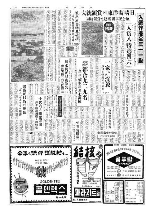 - 13億圜(억원)의財物損失(재물손실) 昌原郡內颱風(창원군내태풍)피해