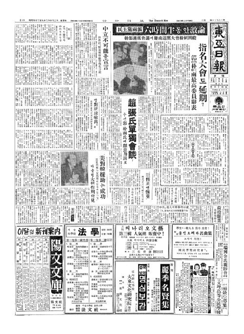 - 民主黨兩派(민주당양파) 六時間半(륙시간반)동안激論(격론)