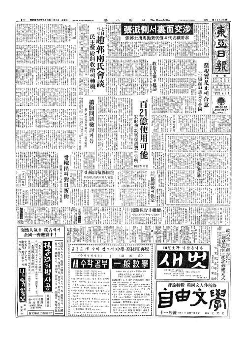 - 七日(칠일)아침 趙(조)·郭兩氏會談(곽양씨회담) 民主黨紛糾收拾(민주당분규수겁)에轉機(전기)?