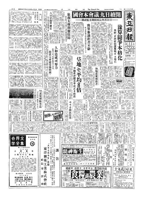 - 國會本會議(국회본회의)、九日續開(구일속개)