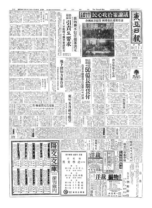 - 崔內務不信任提案決定(최내무부신임제안결정) 治安局長(치안국장) 引責(인책)도要求(요구)
