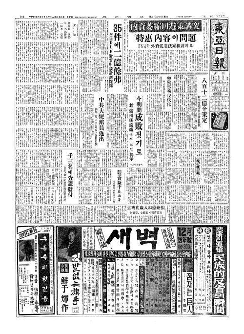 석간 1면 종합