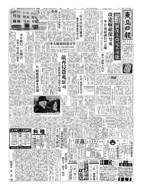 - 李大統領四選可望(리대통영사선가망) 美紙(미지)、民主黨(민주당)의野黨具顯努力讃揚(야당구현노역찬양)