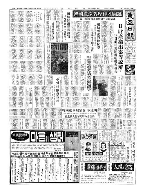 - 豫決委豫算(예결위예산) 綜合質疑(종합질의)서 "正副統領選擧後(정부통령선거후)에 參議院選擧(삼의원선거) 崔內務(최내무)、野側(야측)의『反共靑(반공청) 民主發展沮害(민주발전저해)』主張(주장)에도答辯(답변) 政府組織法(정부조직법)의改正(개정)도硏究(연구)"
