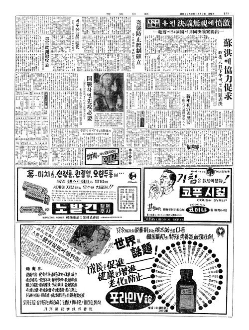 - UN 유엔總会(총회) 51對(대)9로通過(통과)