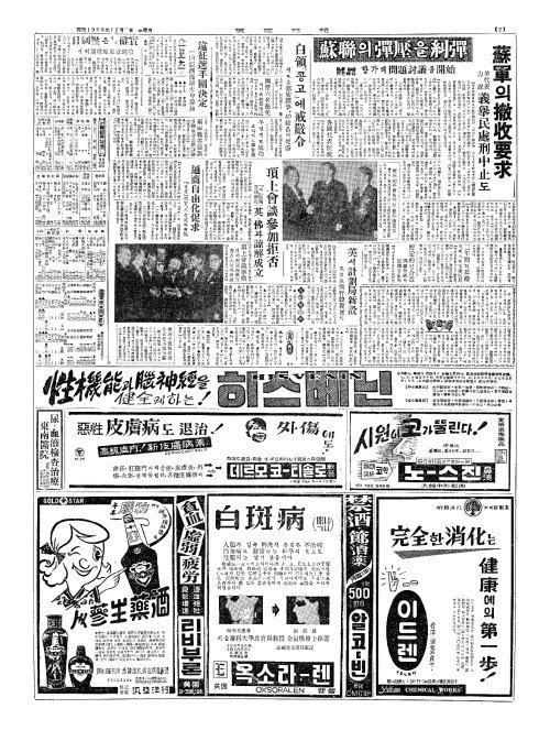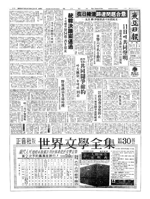 - 在日韓僑(재일한교) 歸還問題合意(귀환문제합의) 九日(구일),柳(류)·伊關會談(이관회담)서原則成立(원즉성입)