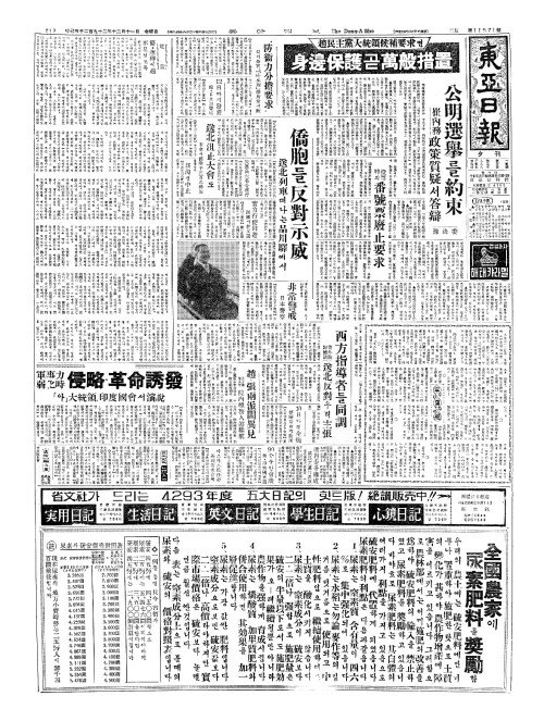 - 十日(십일)에도擧行(거항) 僑胞送北反對(교포송배반대)데모