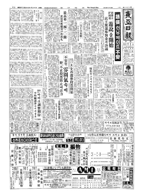 - 自由黨(자유당)서關心(관심) 民主黨選擧對策(민주당선거대책)