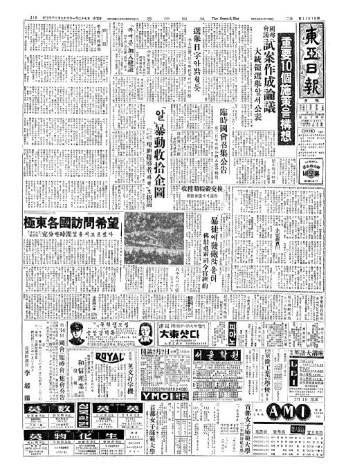 - "韓(한)·英(영)·西獨(서독)에 젊은領導者出現(영도자출현)" 在美(재미)「관인寺(사)」中國老人豫言(중국로인예언)