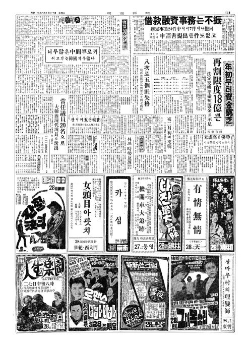 - 外畵開封舘(외화개봉관)으로 「首都(수도)」「씨네마」兩劇場(량극장)