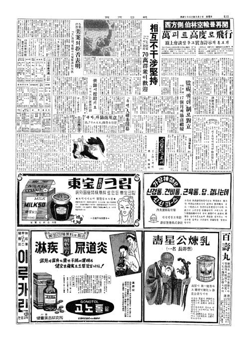- 西方側(서방측)、伯林空輸(백림공수)를再開(재개) 萬(만)『피트』高度(고도)로飛行(비행)