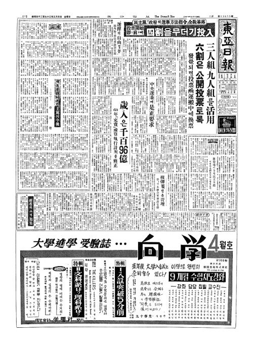 - 民主黨(민주당)、「政府(정부)의選擧方法指令(선거방법지영)」全貌暴露(전모폭노) 投票開始(투표개시) 卽前(즉전)에 四割(사할)을무더기投入(투입)