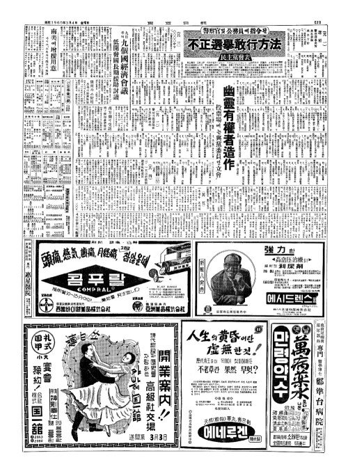 - "不法指示(부법지시)한일없다" 連席會議(연석회의)마치고 政府(정부)·自由黨談話(자유당담화)