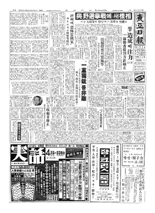 - 『李大統領言明(이대통영언명)은 半(반)쪼각말에不過(부과)』民主黨(민주당)서非難(비난)
