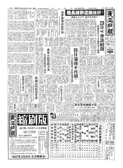 - 一切不問措置(일절부문조치) 市內學校當局態度(시내학교당국태탁)