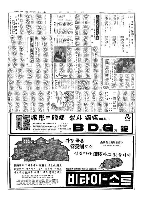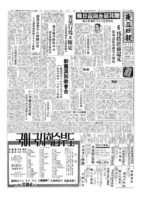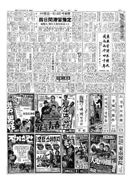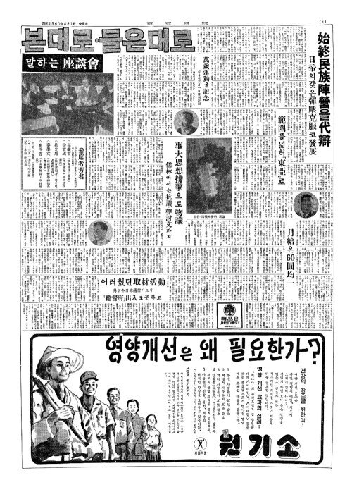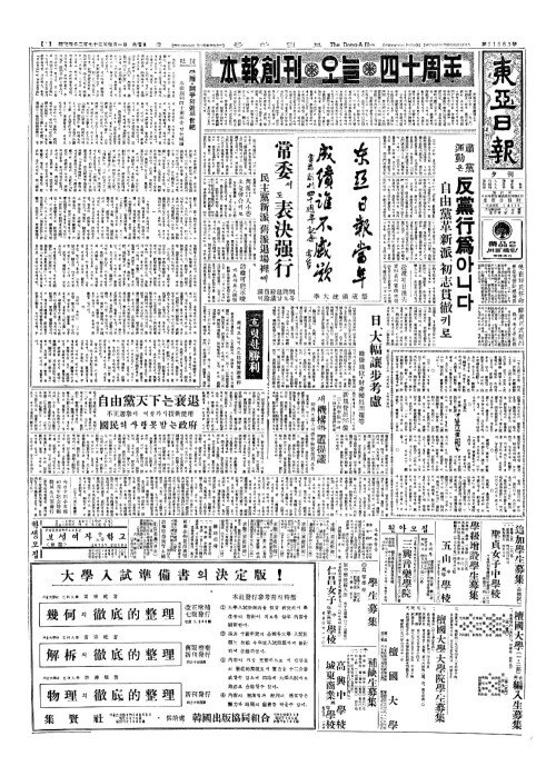 - 今日夕刊(금일석간)은本報(본보) 40周年記念特輯(주년기염특집) 關係(관계)로八面發行(팔면발행)