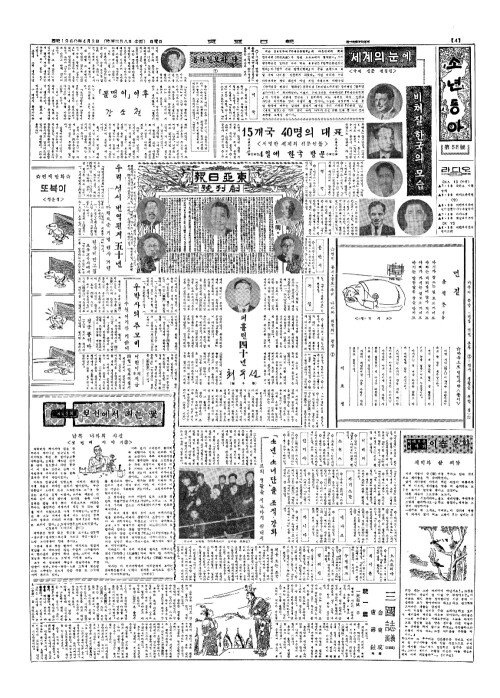 - 祝電繼續遝至(축전계속답지) 本報創刊(본보창간)40周年(주연)에