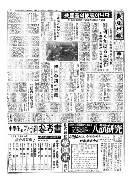 - 共產黨(공산당)의使嗾(사수)아니다 野(야)、馬山事件國會調委現場檢證(마산사건국회조위현장검증)서確認(확인)