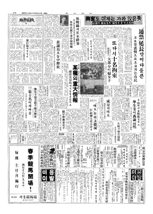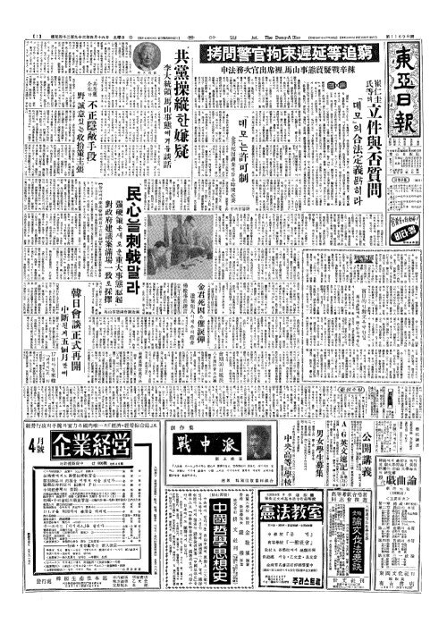 - 拷問警官拘束遲延等追窮(고문경관구속지연등추궁) 申法務次官出席裡(신법무차관출석리)、馬山事態質疑戰辛辣(마산사태질의전신날)