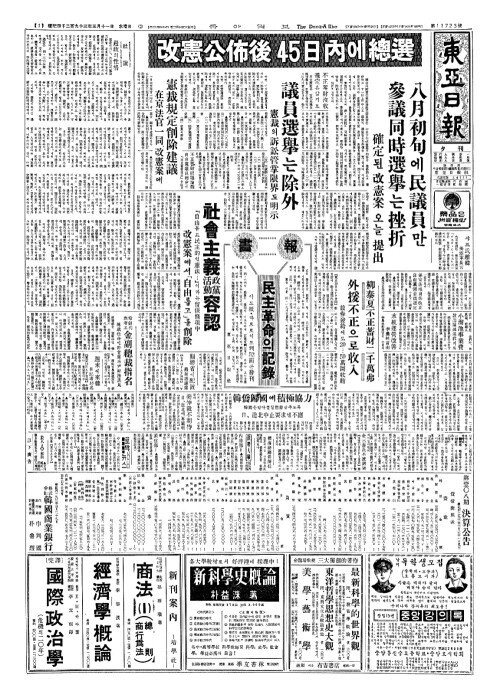 - 改憲公佈後(개헌공포후) 45日內(일내)에總選(총선)