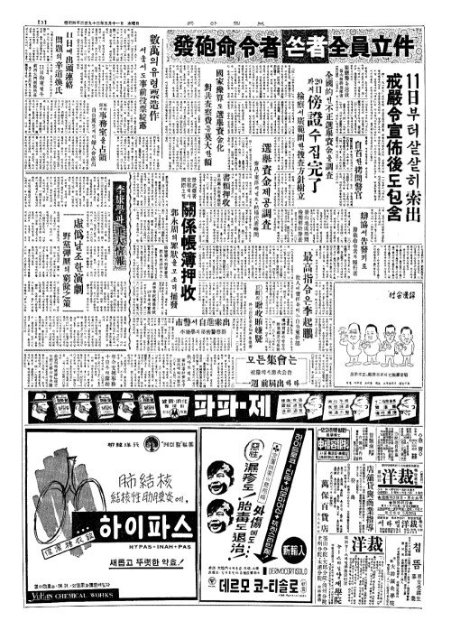 - 書類押收(서유압수) 自由黨本部(자유당본부)를搜索(수색)