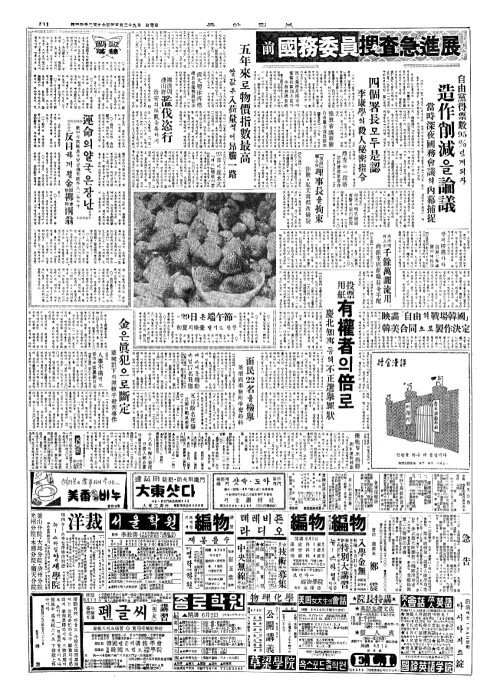 - 豫算審議難關(예산심의난관) 自由黨市議員辭表(자유당시의원사표)