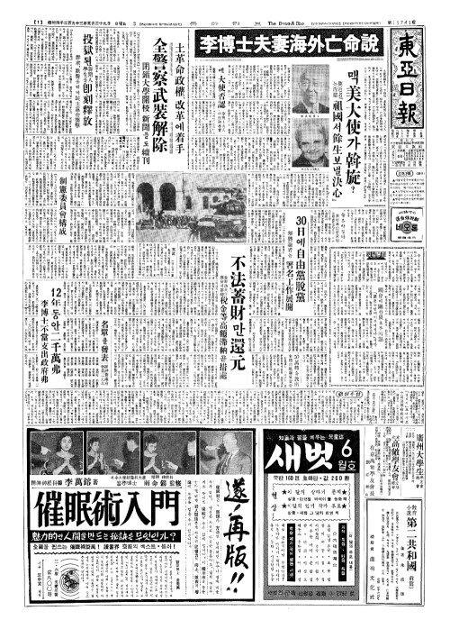 - 맥大使否認李博士夫人(대사부인리박사부인)의 往訪事實(왕방사실)
