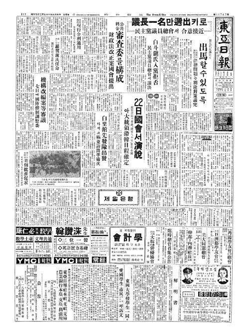 - 改憲推委(개헌추위)와無關(무관) 趙潤濟氏(조윤제씨)도聲明(성명)