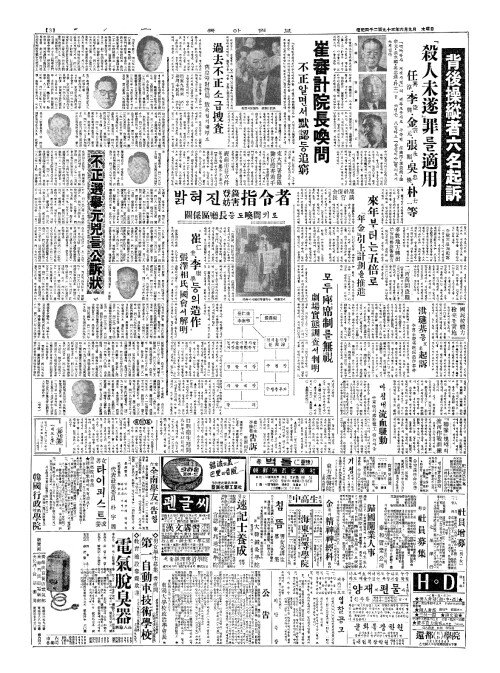 - 崔審計院長(최심계원장)의不正(부정) 選擧運動指示是認(선거운동지시시인) 職員六名喚問(직원륙명환문)