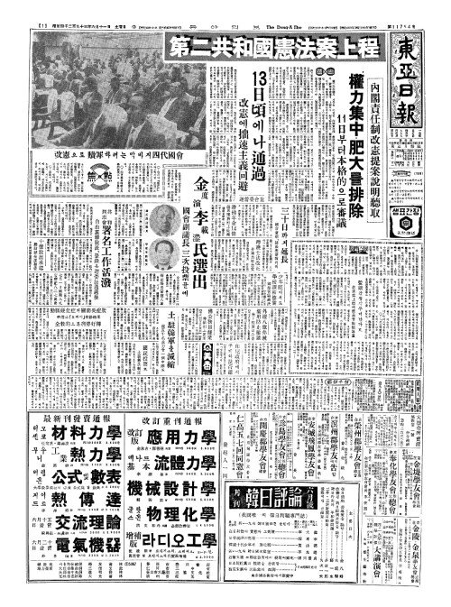 - "讀會節次必要(두회절차필요)없다 郭議長談(곽의장담) 13日(일)까지表決可能(표결가능)"