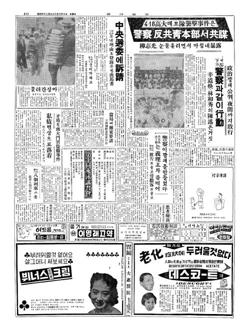 - 4·18高大(고대)데모隊襲擊事件(대습격사건)은 警察(경찰)·反共靑本部(반공청본부)서共謀(공모)