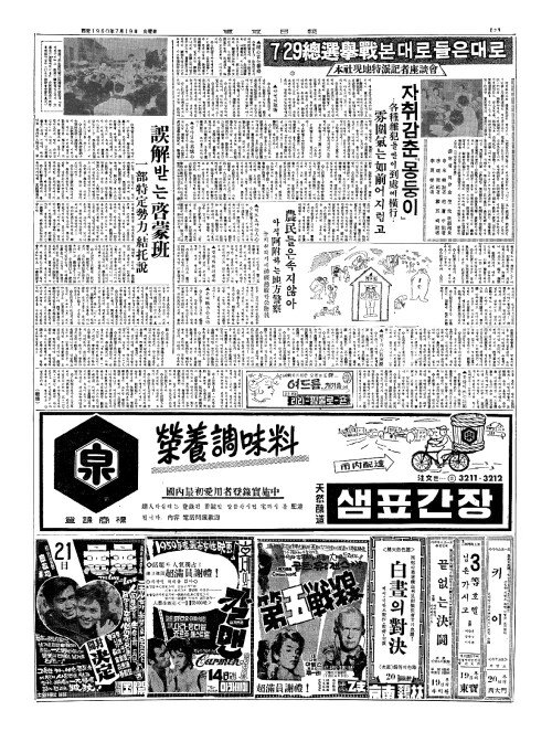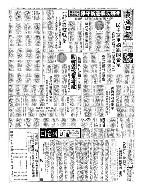 - 聽衆(청중)들이 高喊(고함) 場內(장내)한때 騷亂(소란) 合同政見發表會(합동정현발표회)