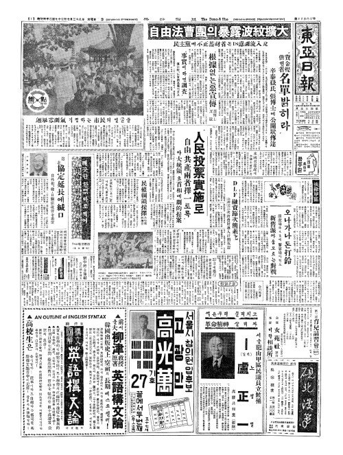 - "人民投票實施(인민투표실시)로 自由(자유)·共產兩者擇一(공산양자택일)토록"