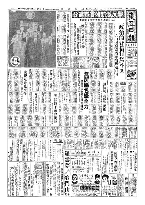 - 煙幕(연막)에싸인『맥』大使(대사)·新舊派會合(신구파회합)