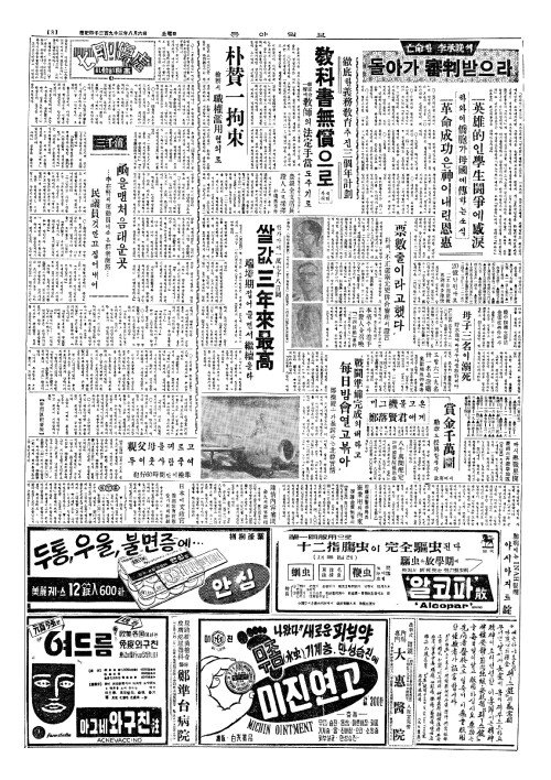 - 徹底(철저)한義務敎育(의무교육)추진三個年計劃(삼개연계획) 敎科書無償(교과서무상)으로 새해부터