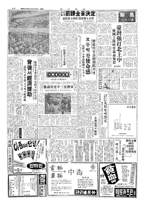 - 美國上院開議(미국상원개의) 安保基金一億增加(안보기김일억증가) 아이크呼訴(호소)멧세지
