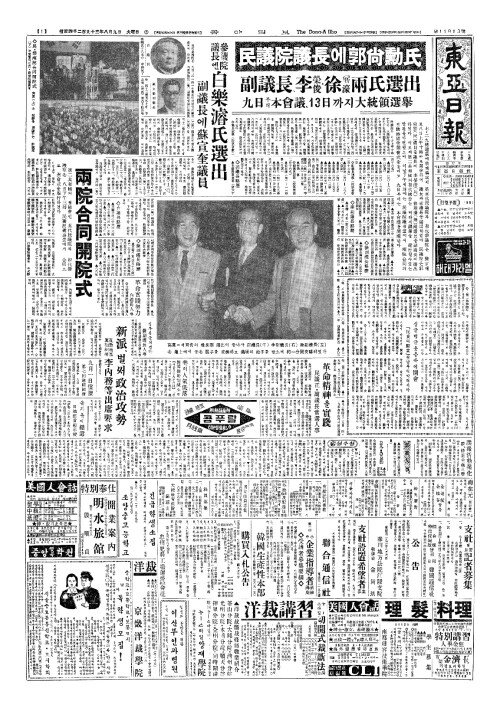 - [社說(사설)] 新國會兩院(신국회양원)의 議長團選擧(의장단선거)를 보고